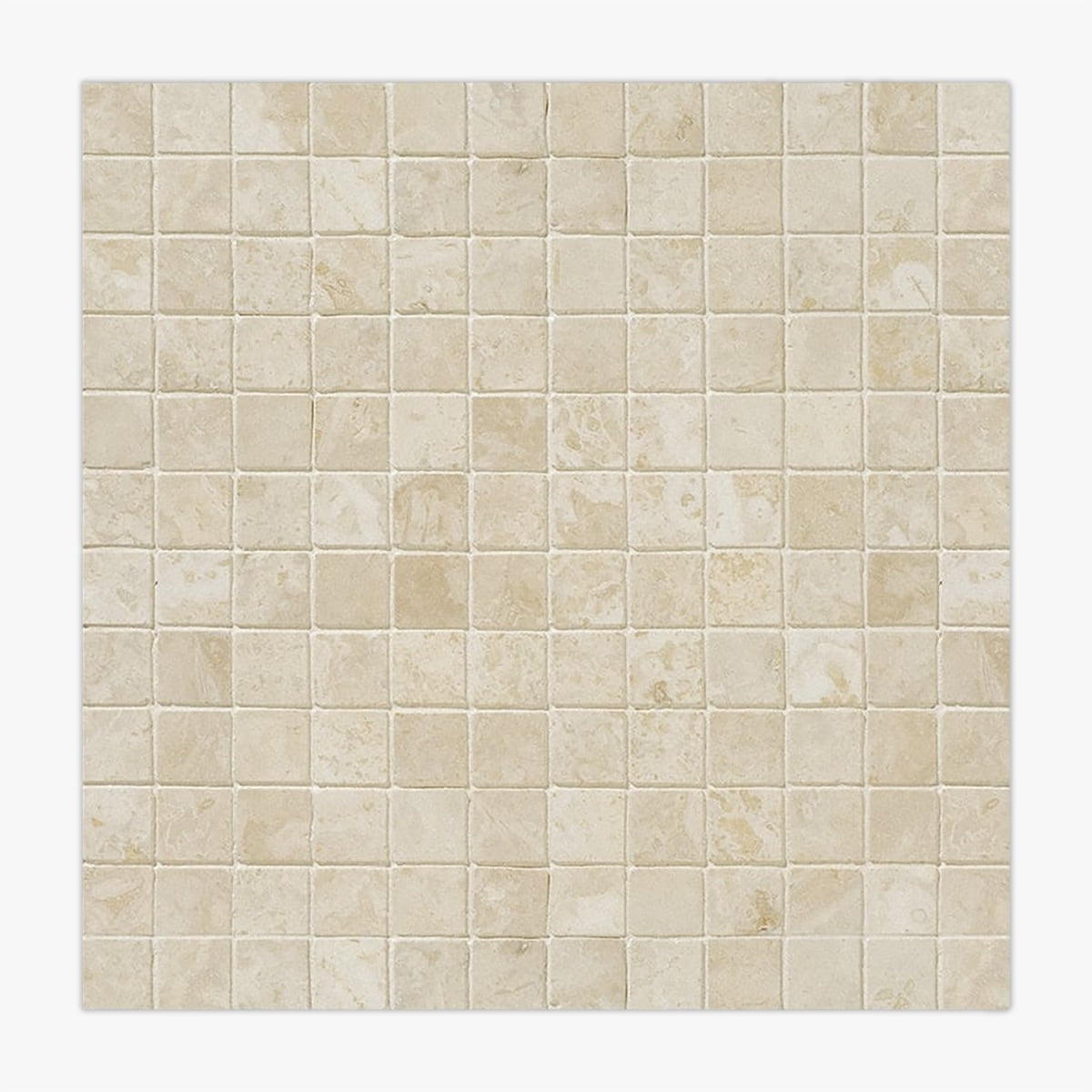 Ivory Light Honed And Filled 1x1 Travertine Mosaic