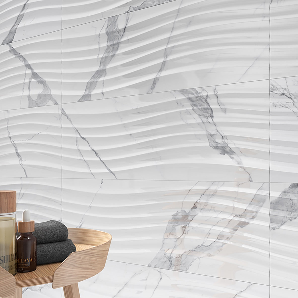 Get a sample of Cinca Marbellous Statuario Deco Glossy 12x36 Ceramic Tile for only $5.00.
