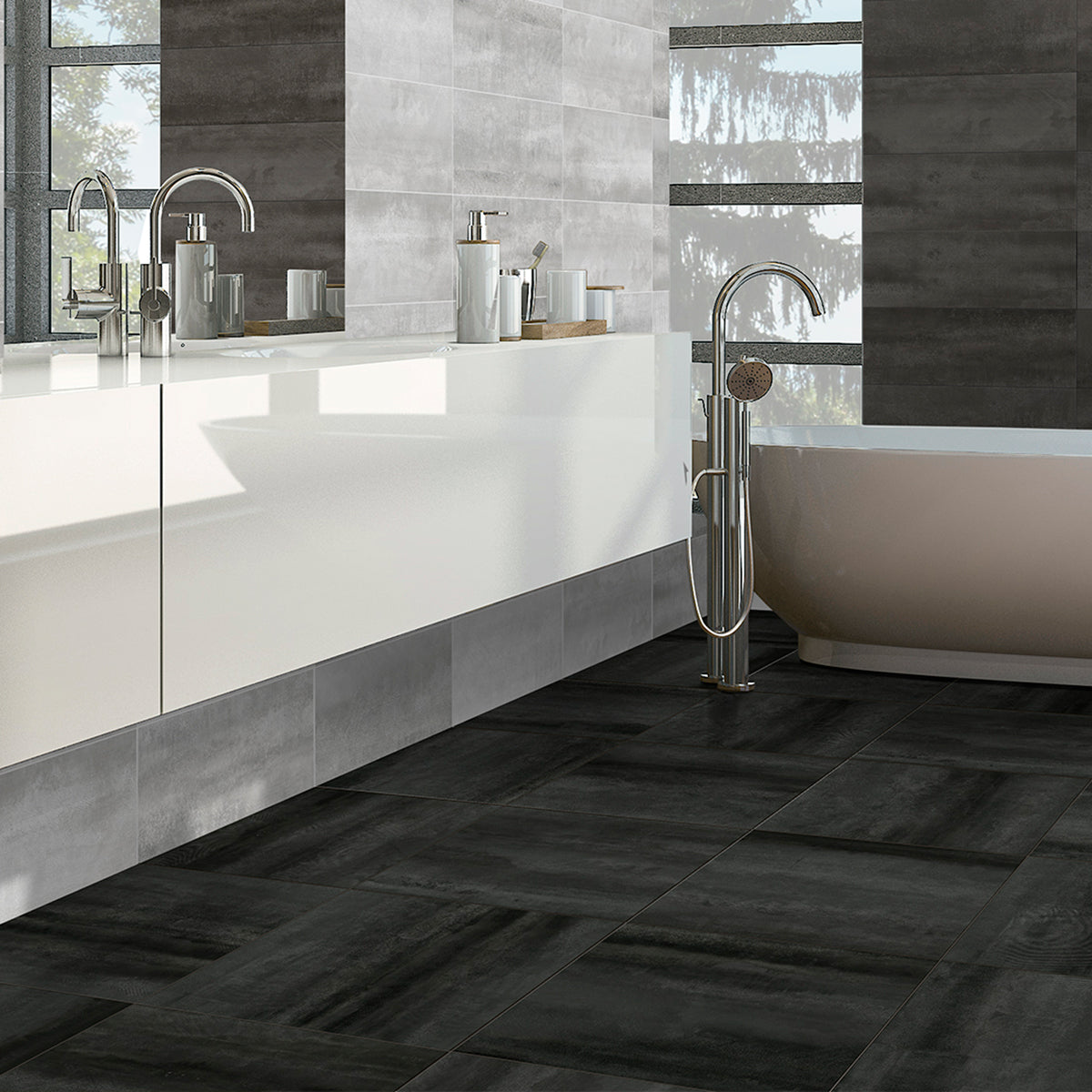 Azteca Synthesis Black Matte 24x48 Porcelain Tile