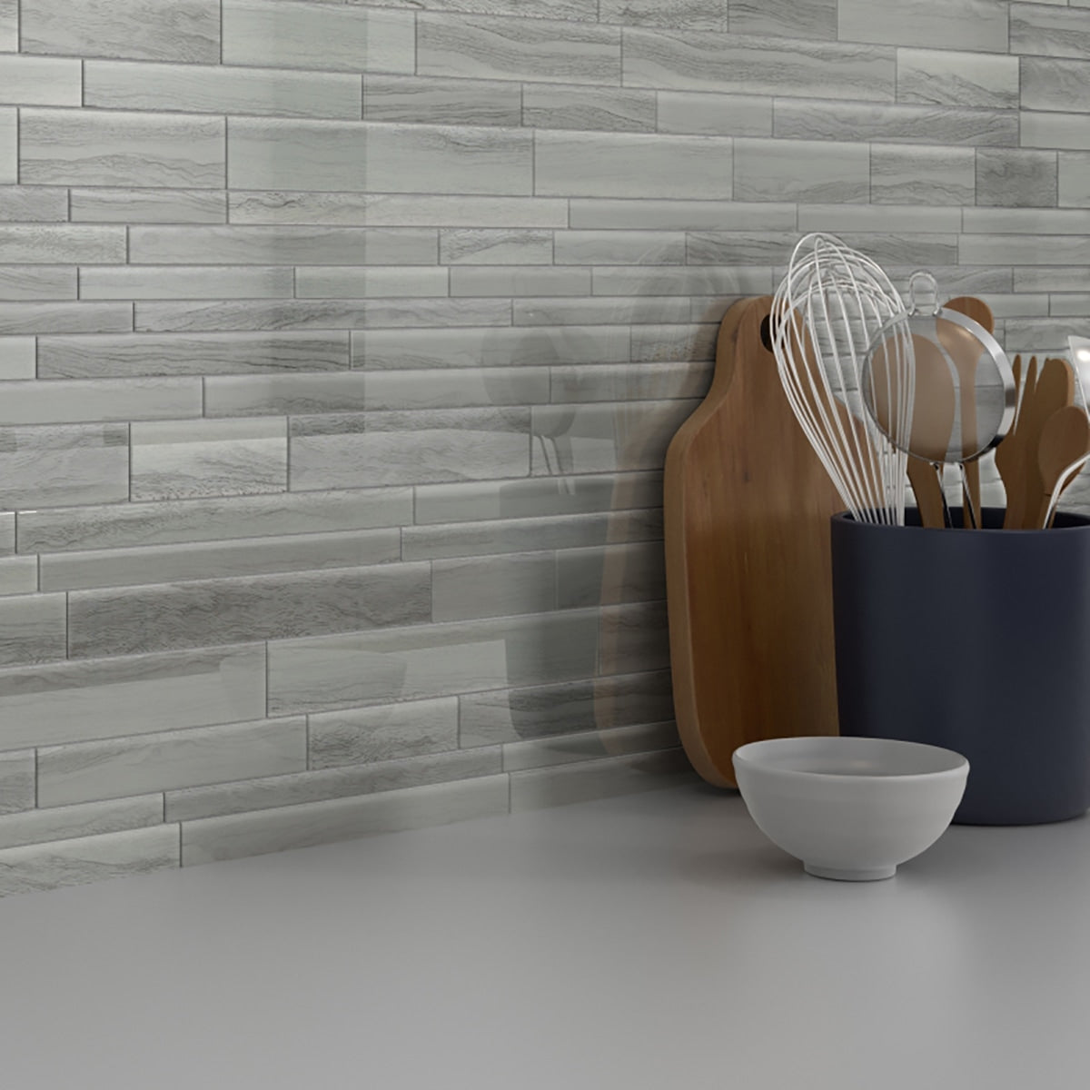 Home Shop Glass Arctic Gray Glossy Ledger Glass Mosaic