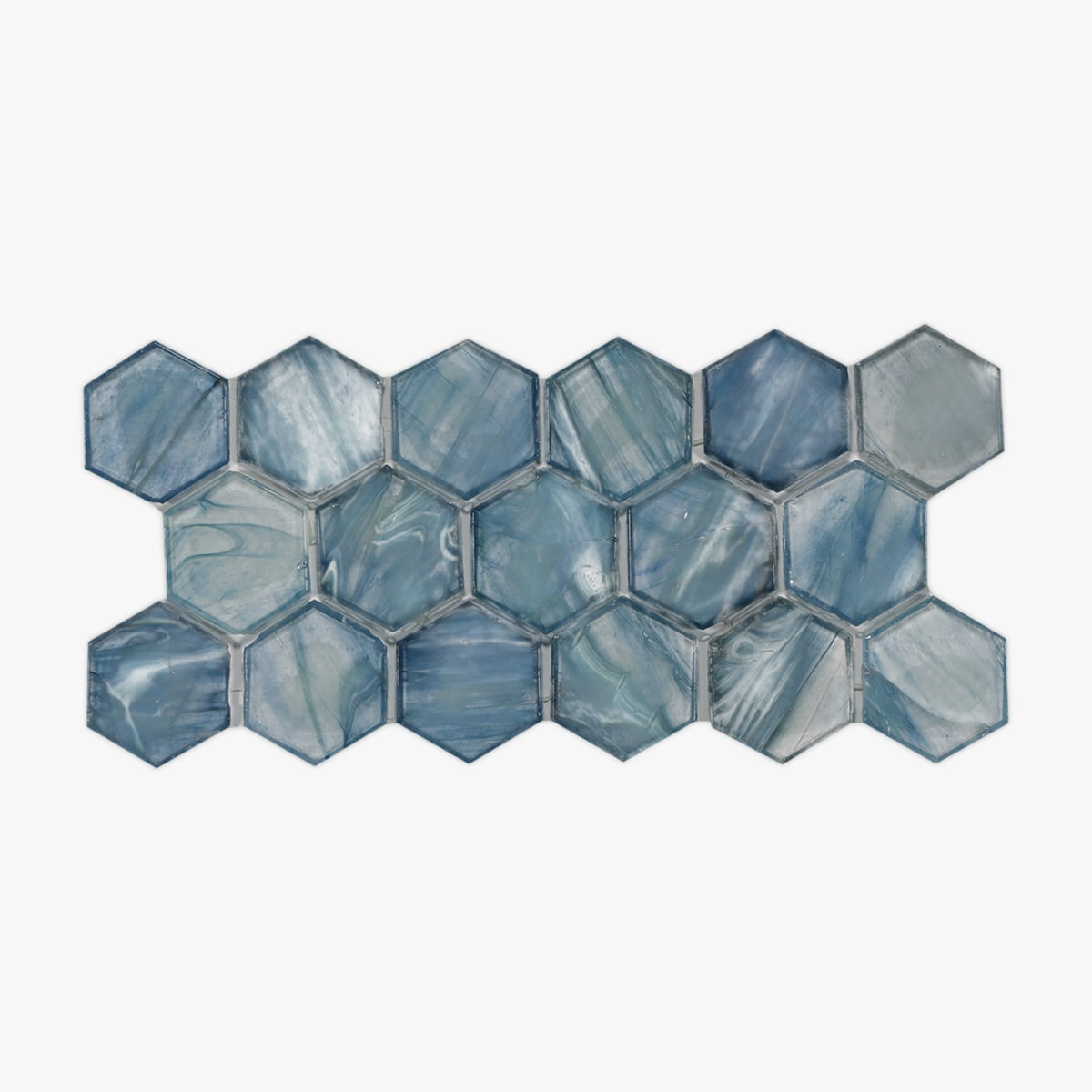 Get a sample of Blue Teal Blend Textured 2 Inch Hexagon Glass Mosaic for only $5.00.
