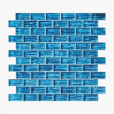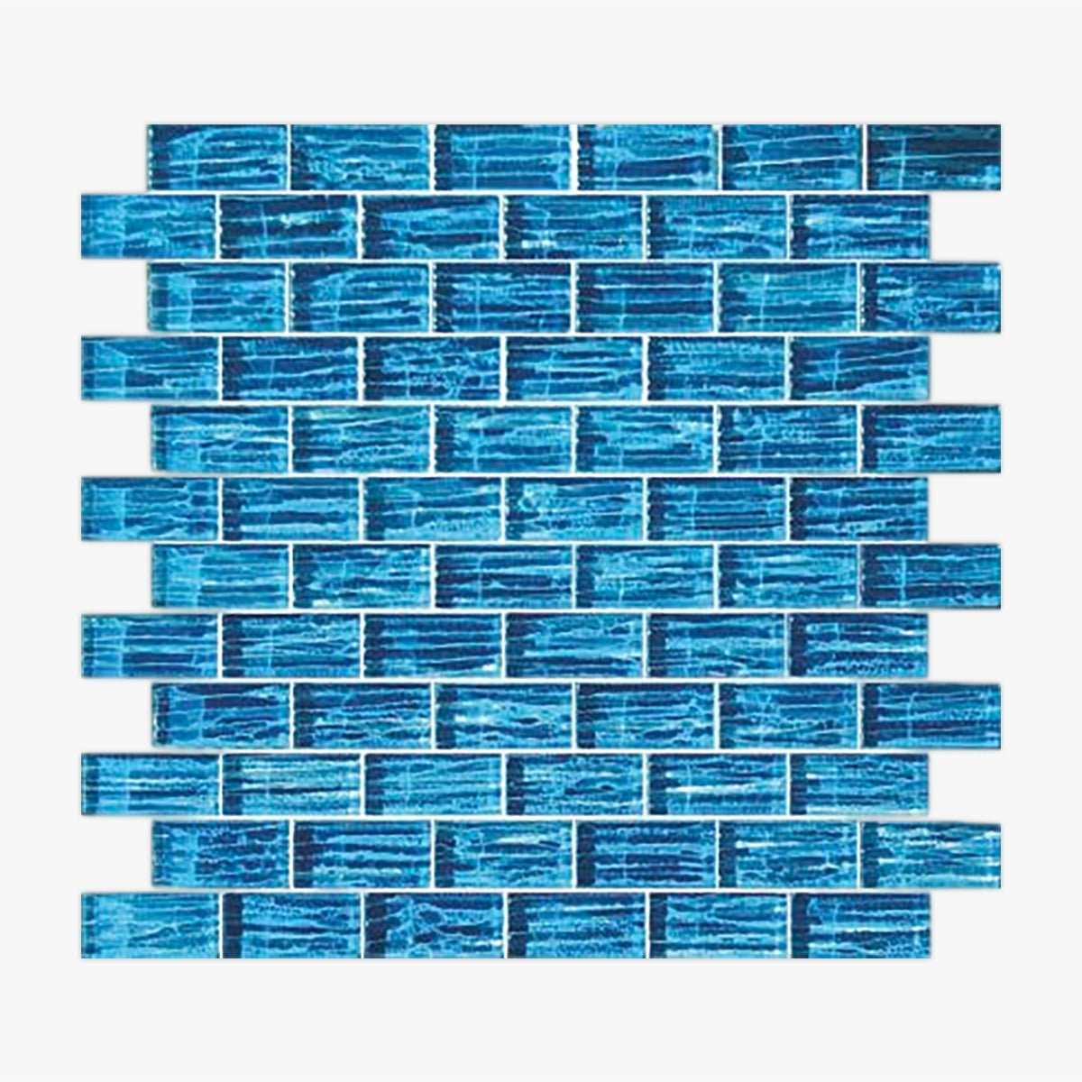 Lagoon Blue Satin 1x2 Brick Glass Mosaic