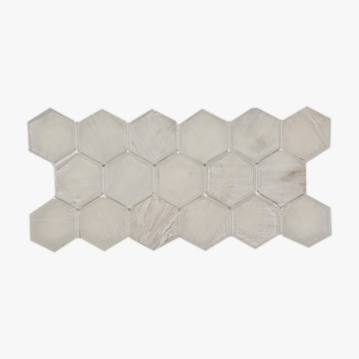 Get a sample of Pearl White Textured 2 Inch Hexagon Glass Mosaic for only $5.00.