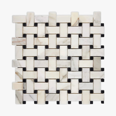 Order a Sample Get a sample of Calacatta Gold, Black Honed 1x2 Basketweave Marble Mosaic for only $5.00.