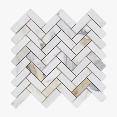 Order a Sample Get a sample of Calacatta Gold Honed 1x3 Herringbone Marble Mosaic for only $5.00.