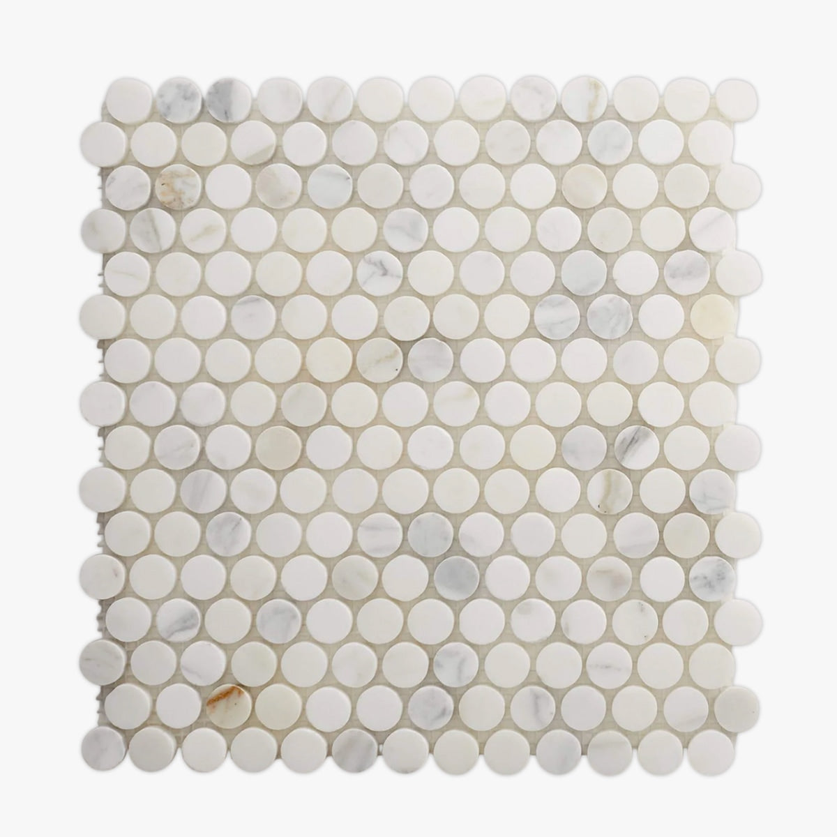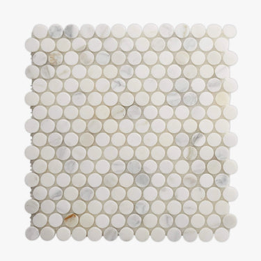 Get a sample of Calacatta Gold Honed Penny Round Marble Mosaic for only $5.00.