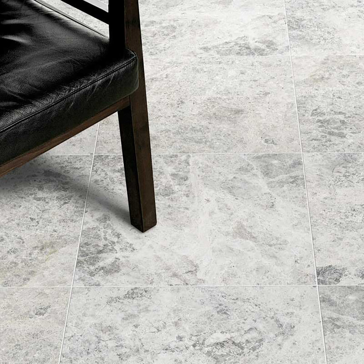Get a sample of Tundra Gray Honed 12x12 Marble Tile for only $5.00.