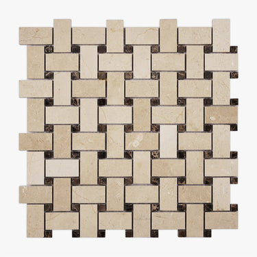 Order a Sample Get a sample of Crema Marfil, Emperador Polished 1x2 Basketweave Marble Mosaic for only $5.00.