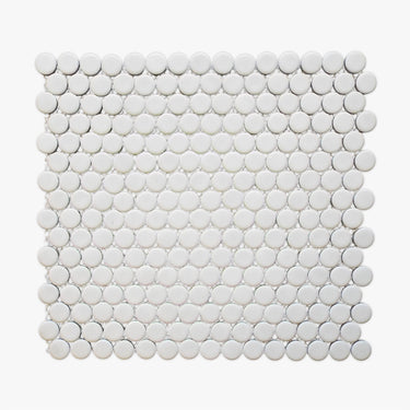 Order a Sample Get a sample of Glamour White Matte Penny Round Porcelain Mosaic for only $5.00.