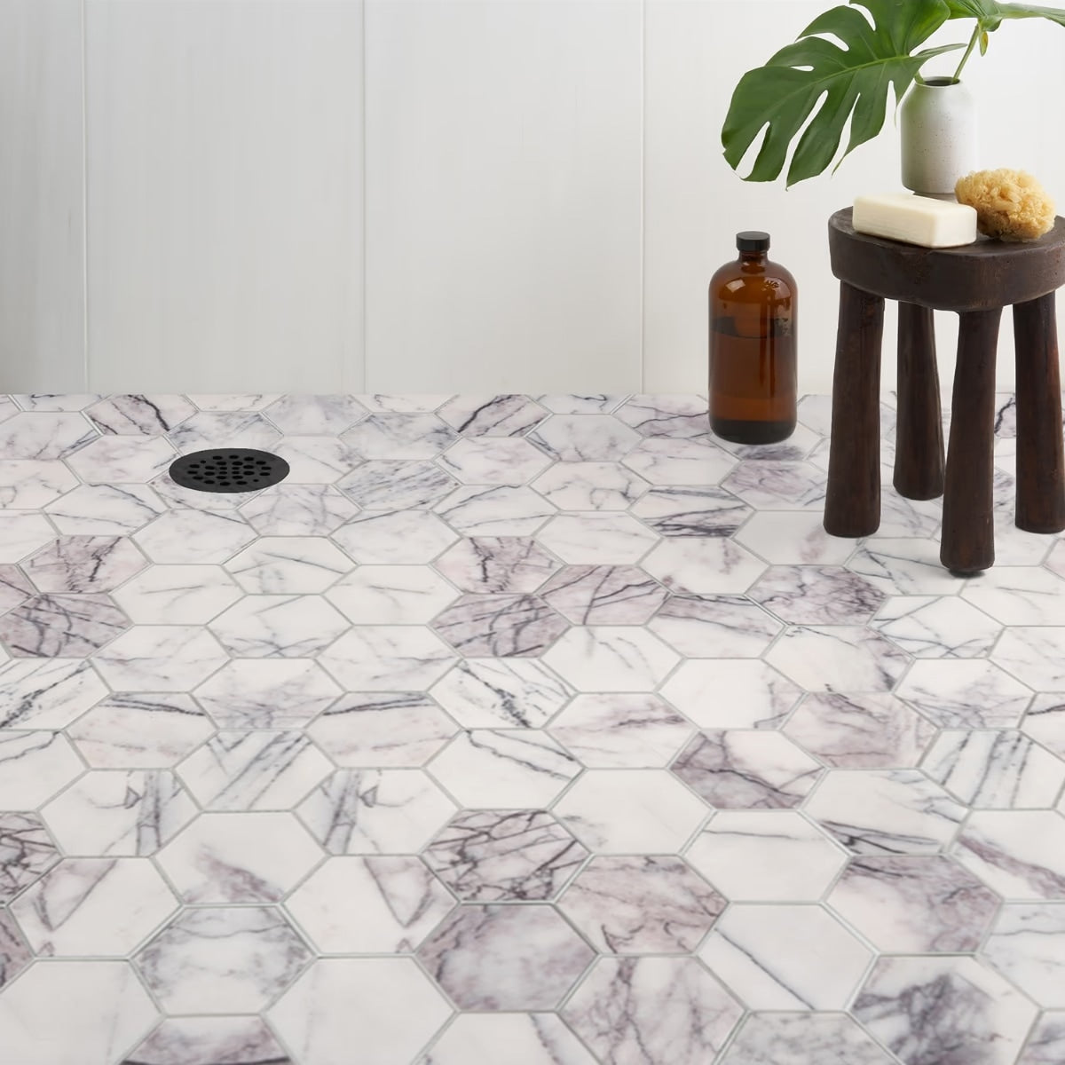 Order a Sample Get a sample of Lilac Honed 3 Inch Hexagon Marble Mosaic for only $5.00.