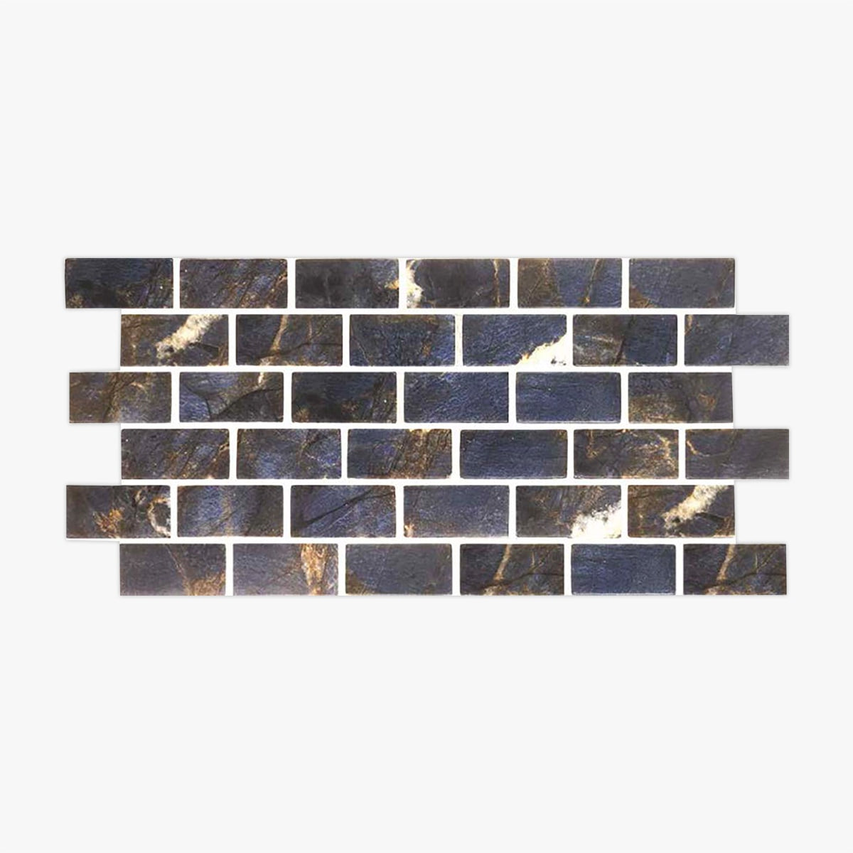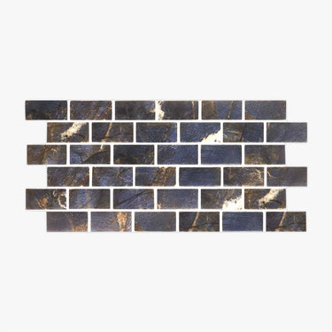 Nero Gold Blue Satin 1x2 Brick Glass Mosaic