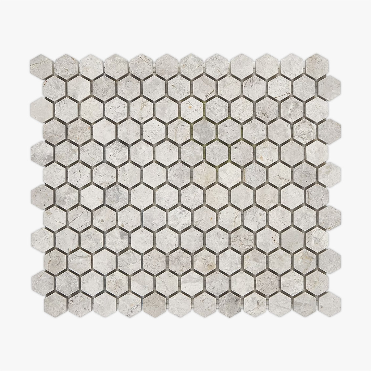 Order a Sample Get a sample of Tundra Gray Honed 1 Inch Hexagon Marble Mosaic for only $5.00.
