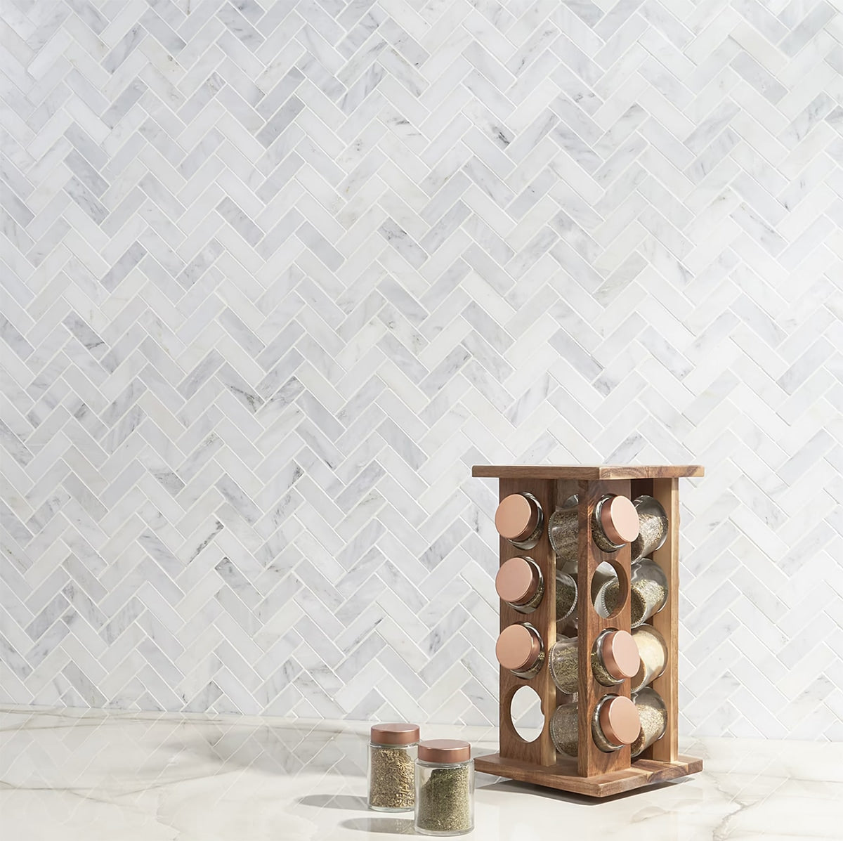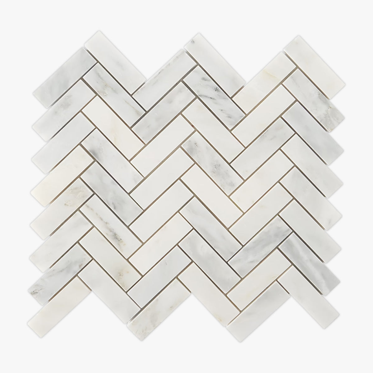 Order a Sample Get a sample of Asian Statuary Honed 1x3 Herringbone Marble Mosaic for only $5.00.