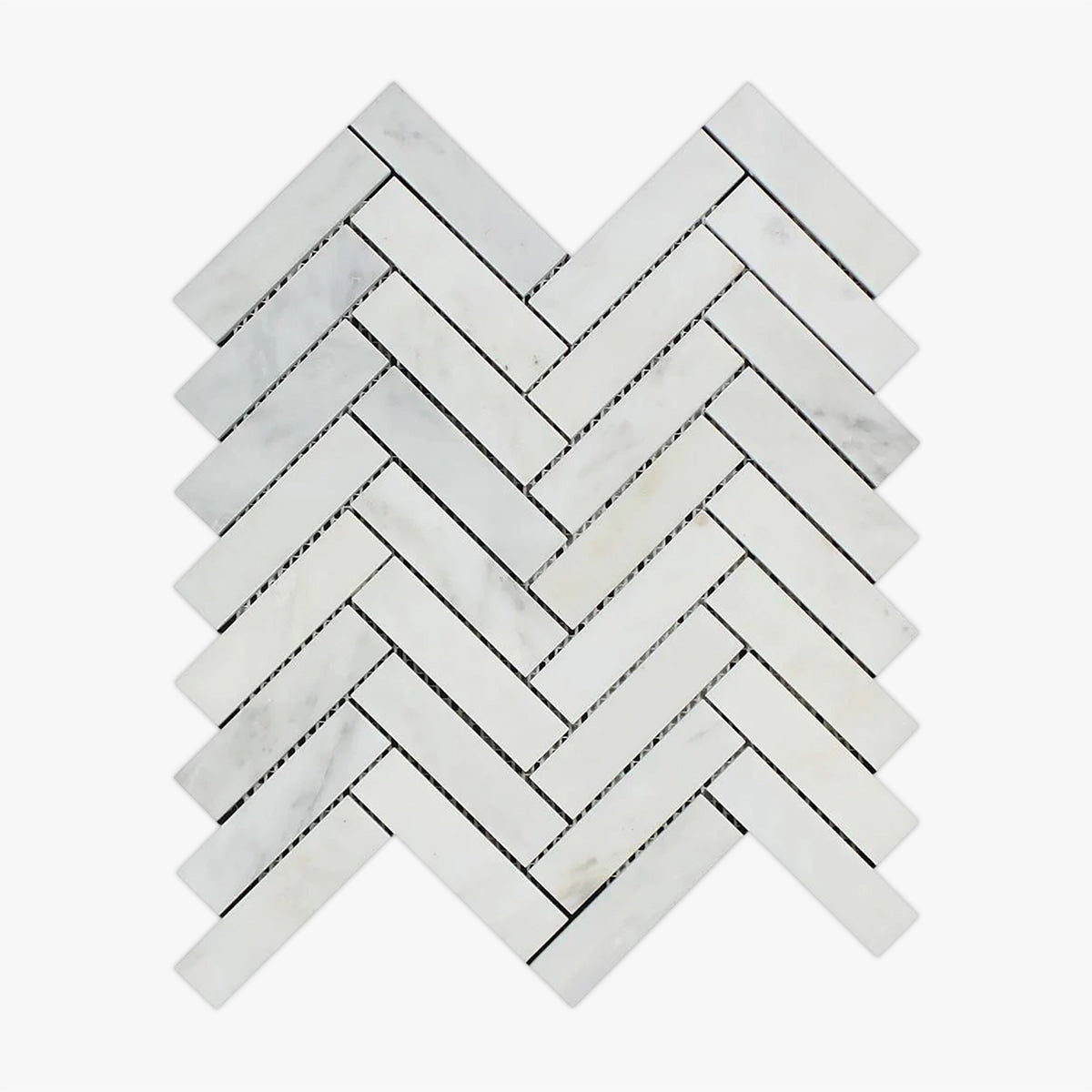 Order a Sample Get a sample of Asian Statuary Honed 1x4 Herringbone Marble Mosaic for only $5.00.