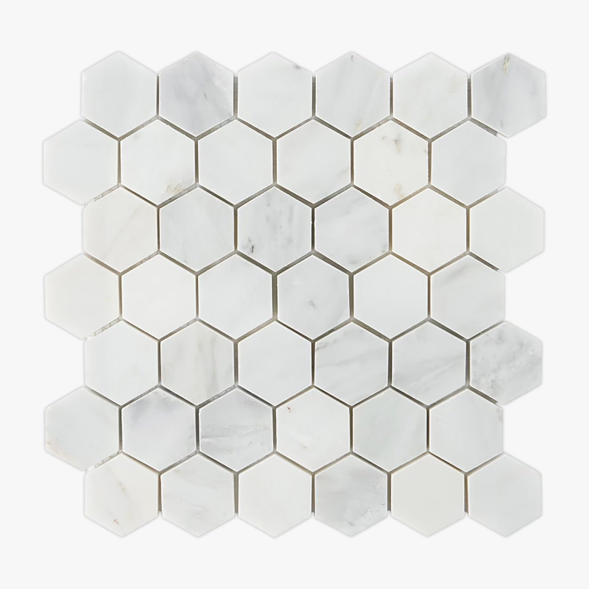 Get a sample of Asian Statuary Polished 2 Inch Hexagon Marble Mosaic for only $5.00.
