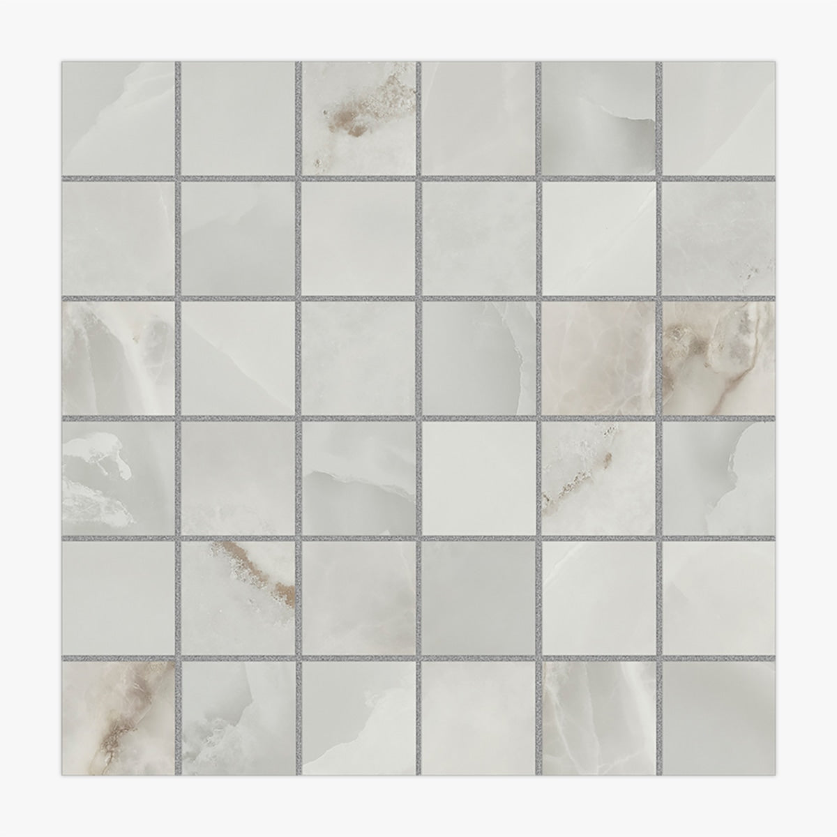 Azteca Onyx Light Gray Glossy 2x2 Porcelain Mosaic