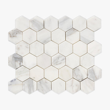 Order a Sample Get a sample of Calacatta Gold Polished 2 Inch Hexagon Marble Mosaic for only $5.00.