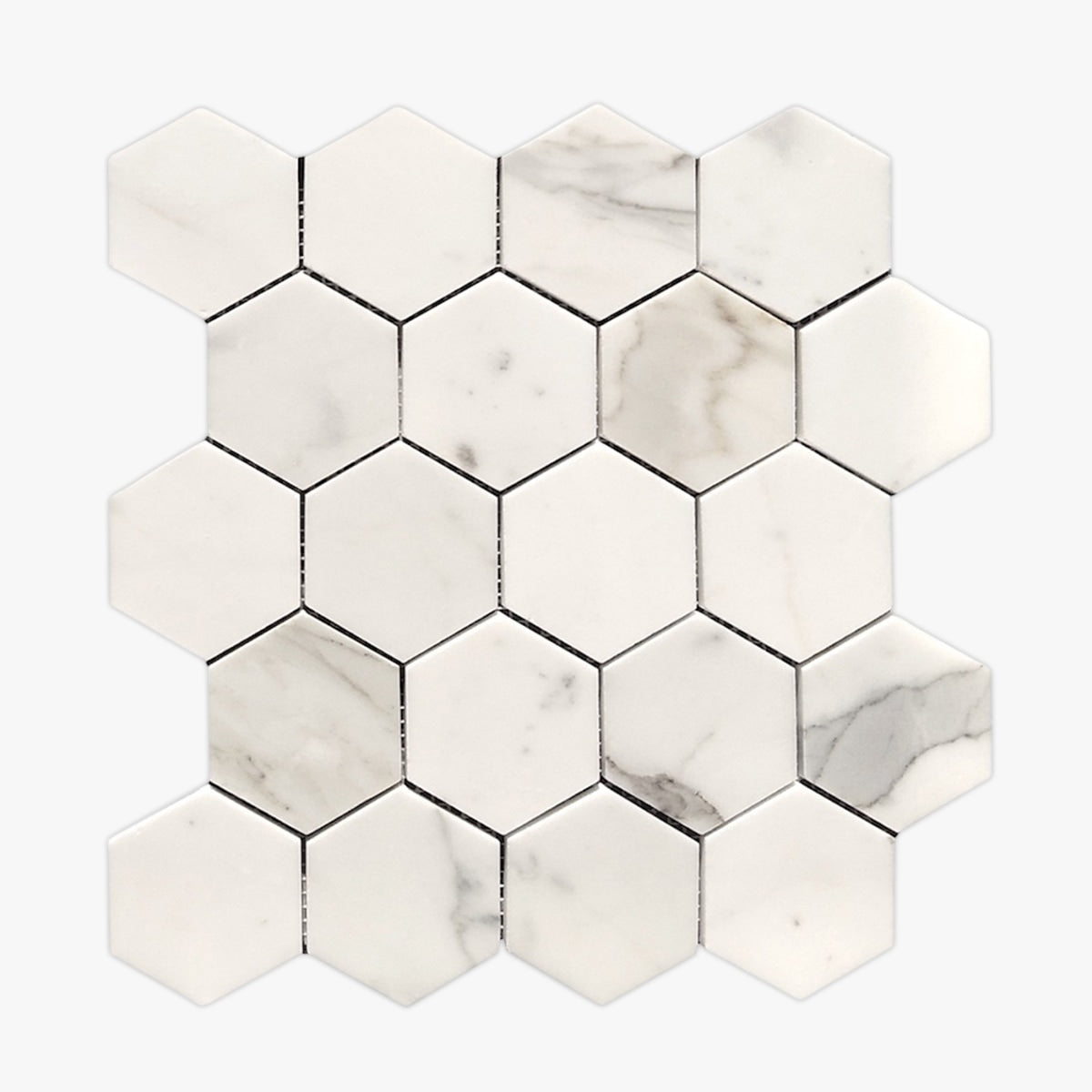 Order a Sample Get a sample of Calacatta Gold Polished 3 Inch Hexagon Marble Mosaic for only $5.00.