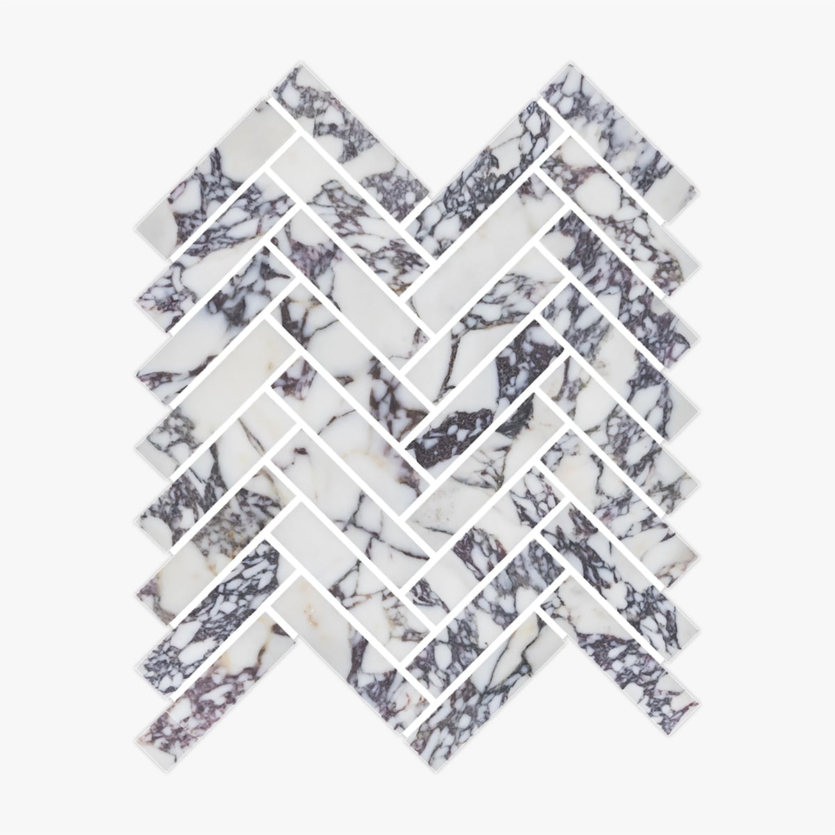 Order a Sample Get a sample of Calacatta Viola Honed 1x4 Herringbone Marble Mosaic for only $5.00.