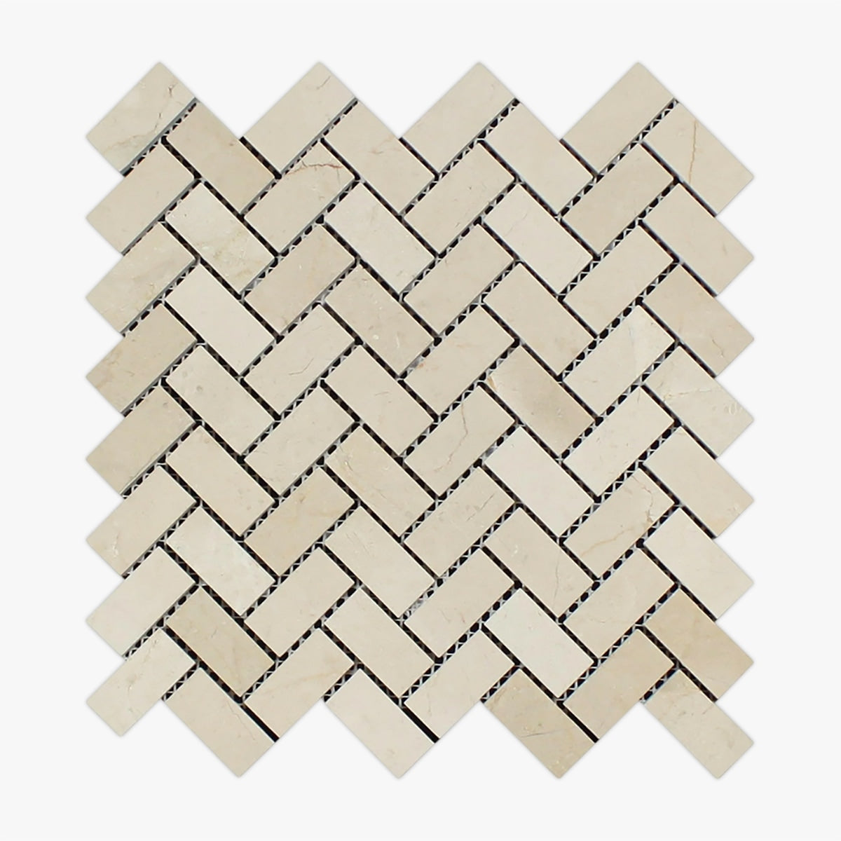 Crema Marfil Honed 1x2 Herringbone Marble Mosaic