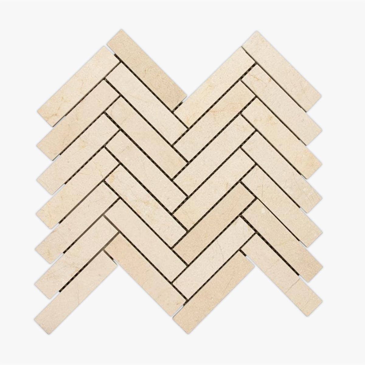Crema Marfil Honed 1x4 Herringbone Marble Mosaic