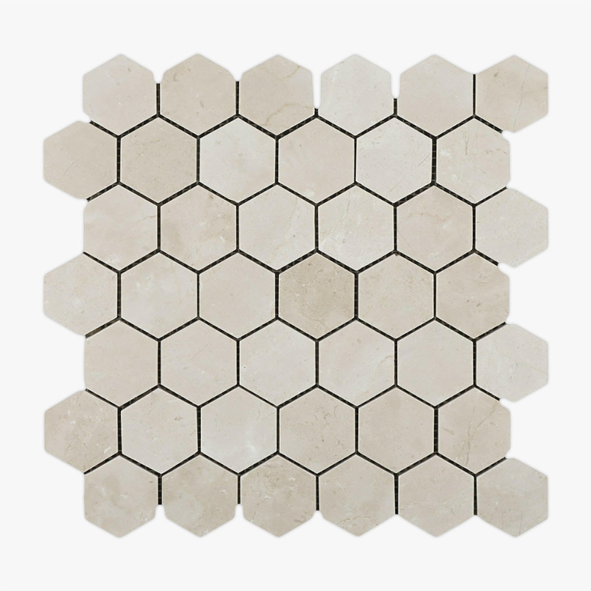 Crema Marfil Honed 2 Inch Hexagon Marble Mosaic