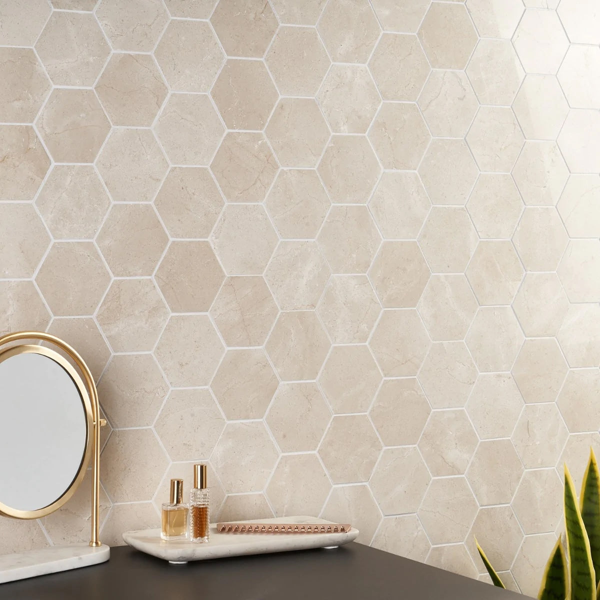 Home Crema Marfil Honed 2 Inch Hexagon Marble Mosaic