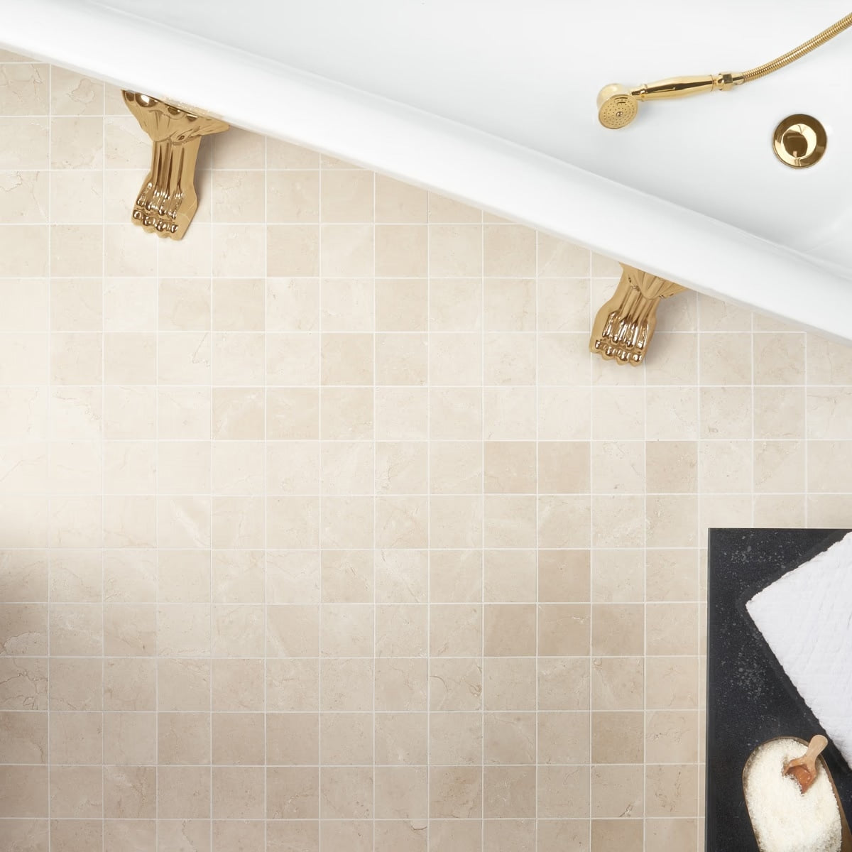 Home Crema Marfil Honed 2x2 Marble Mosaic