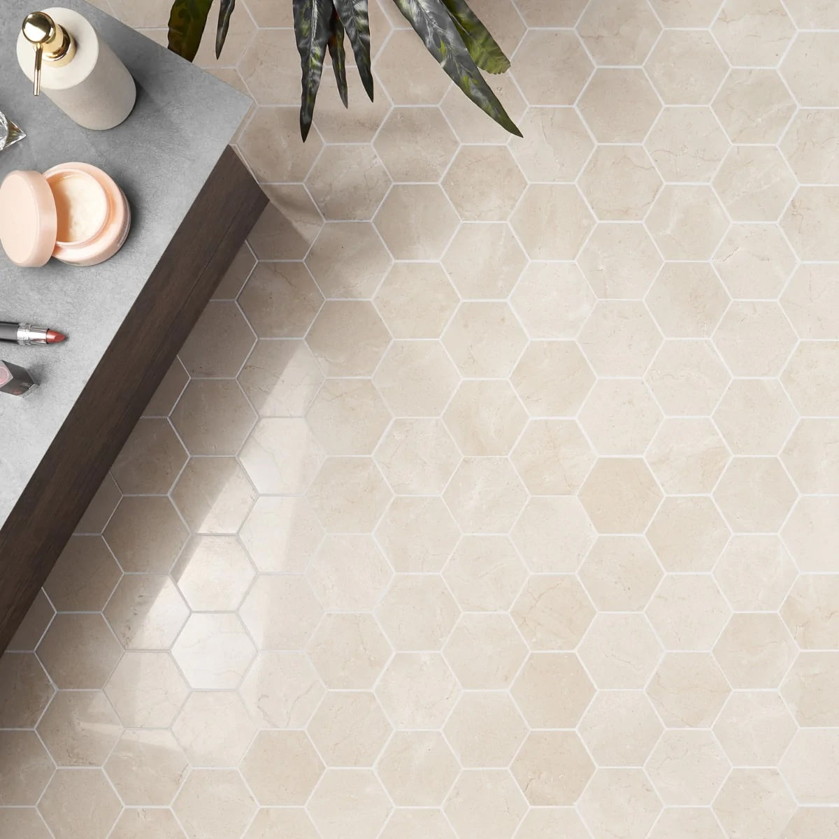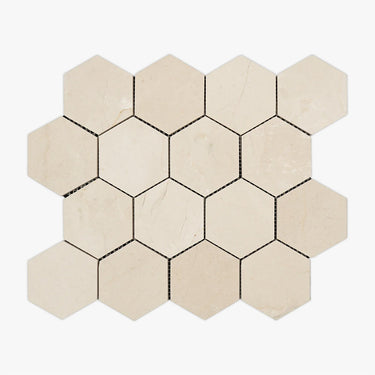 Crema Marfil Polished 3 Inch Hexagon Marble Mosaic