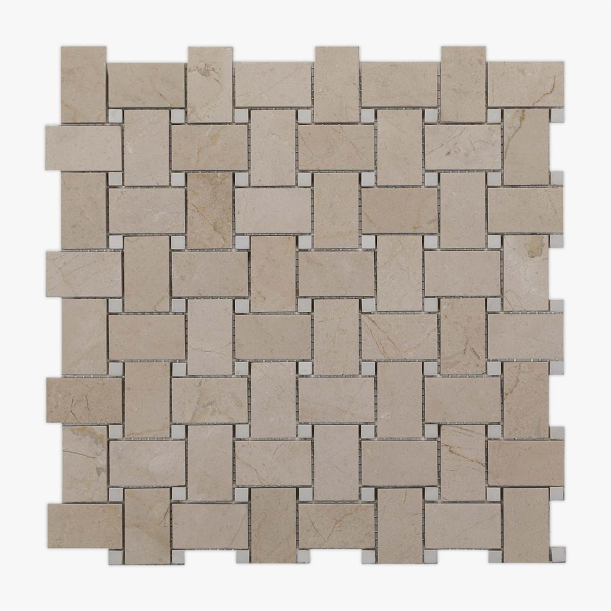 Order a Sample Get a sample of Crema Marfil, White Polished 1x2 Basketweave Marble Mosaic for only $5.00.