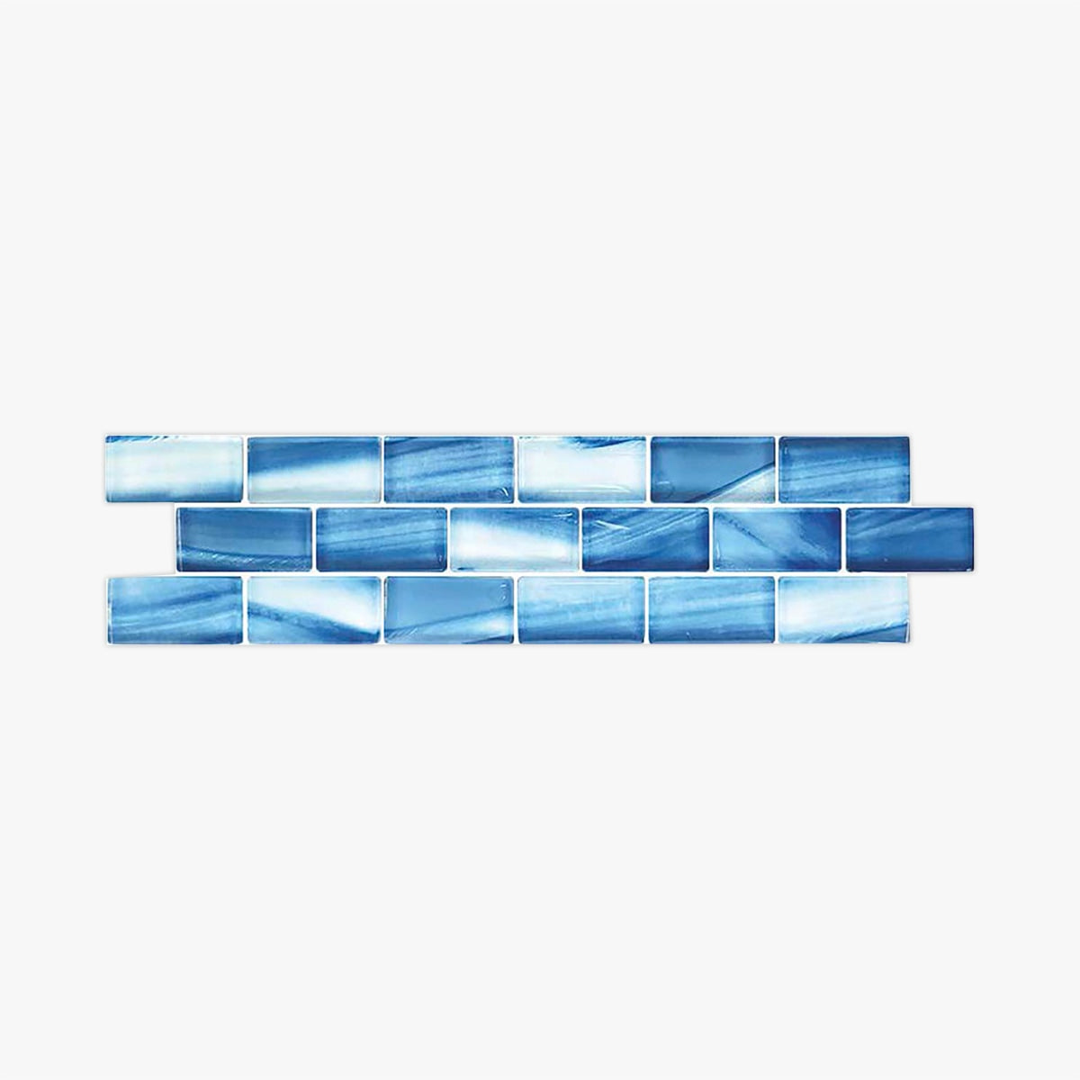 Glacier Blue Mix Satin 1x2 Brick Glass Mosaic