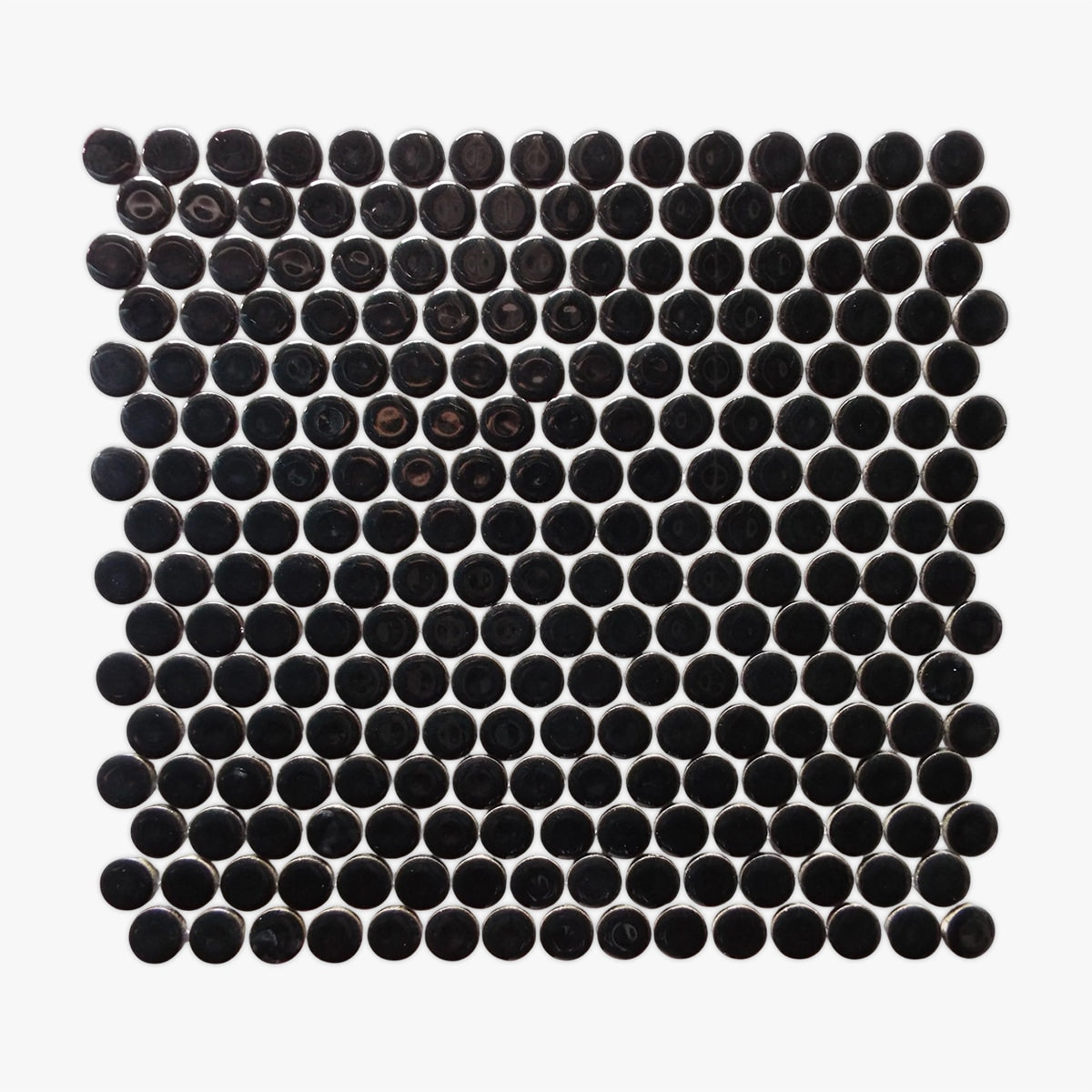Glamour Black Glossy Penny Round Porcelain Mosaic