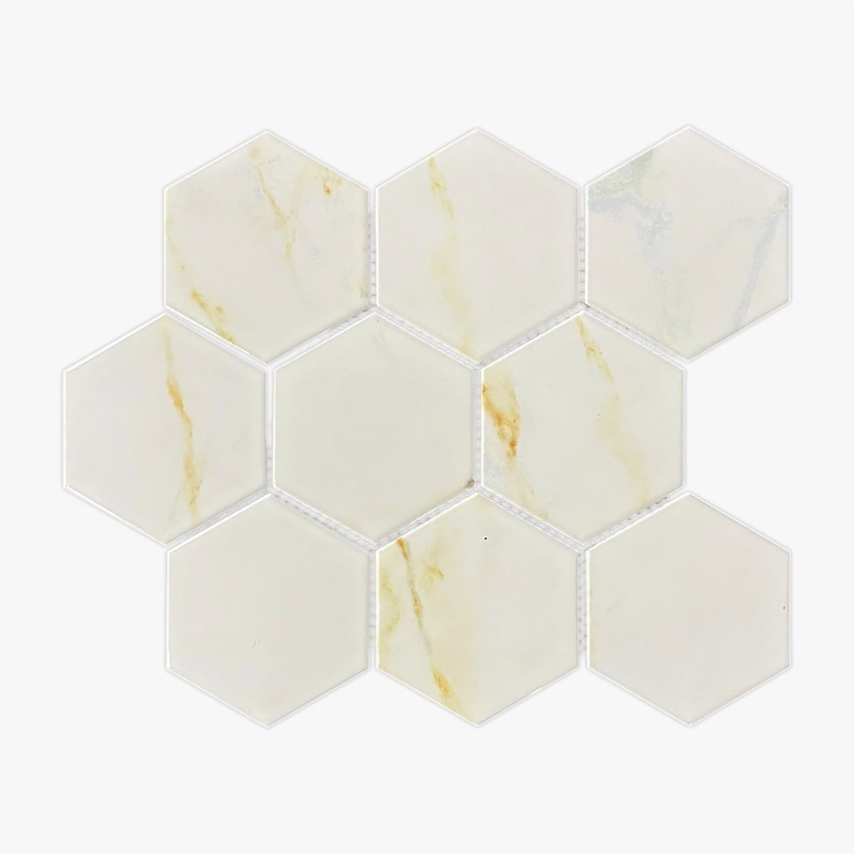Glamour Calacatta Gold Glossy 4 Inch Hexagon Porcelain Mosaic