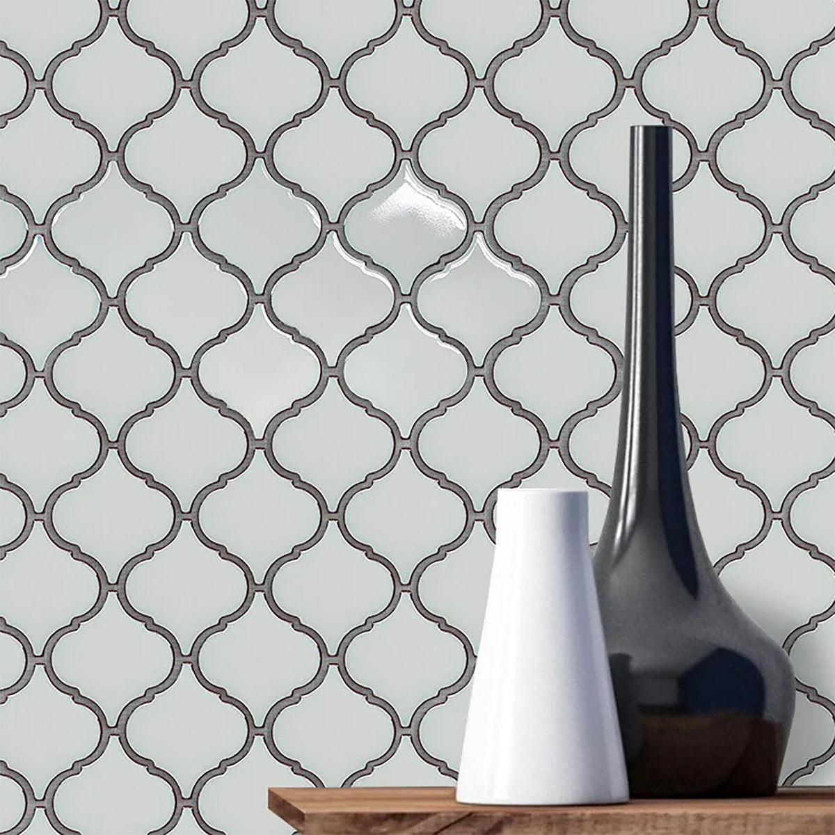 Glamour Light Green Glossy 2 Inch Lantern Arabesque Porcelain Mosaic
