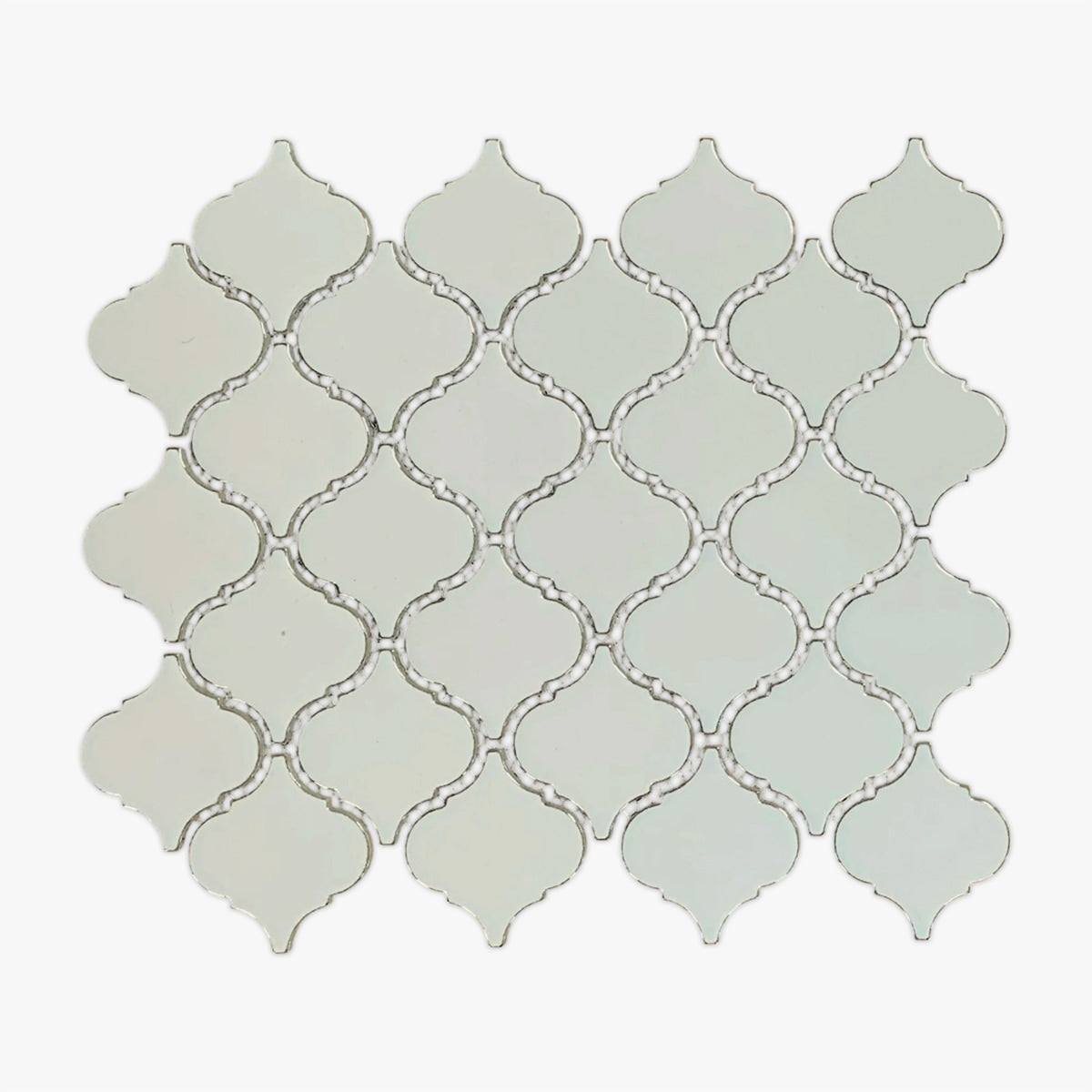Get a sample of Glamour Light Green Glossy 2 Inch Lantern Arabesque Porcelain Mosaic for only $5.00.