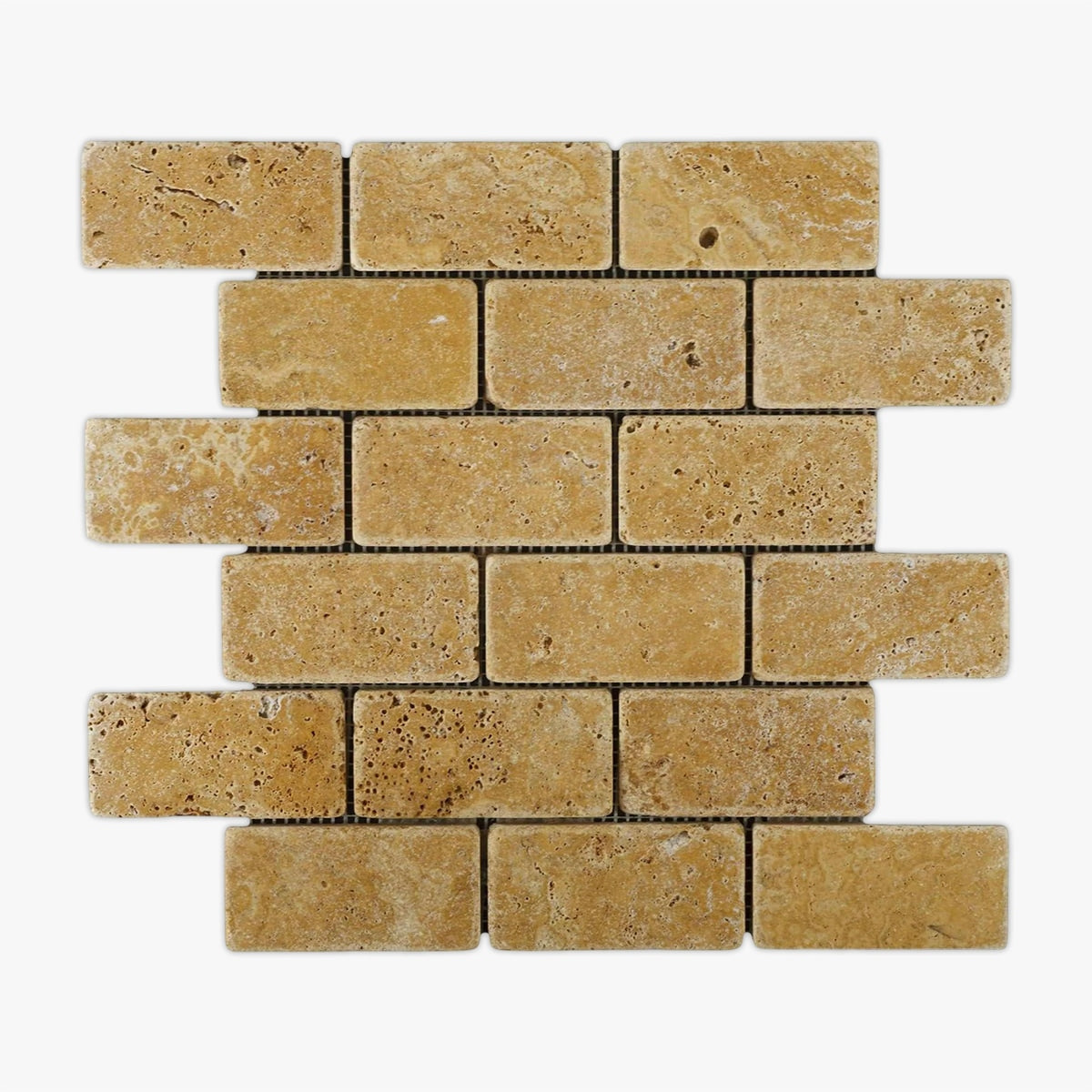 Gold Yellow Tumbled 2x4 Brick Travertine Mosaic