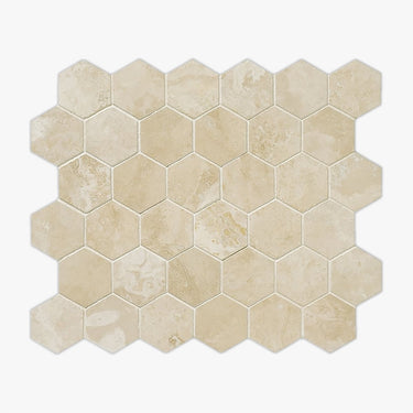 Ivory Light Honed And Filled 2 Inch Hexagon Travertine Mosaic