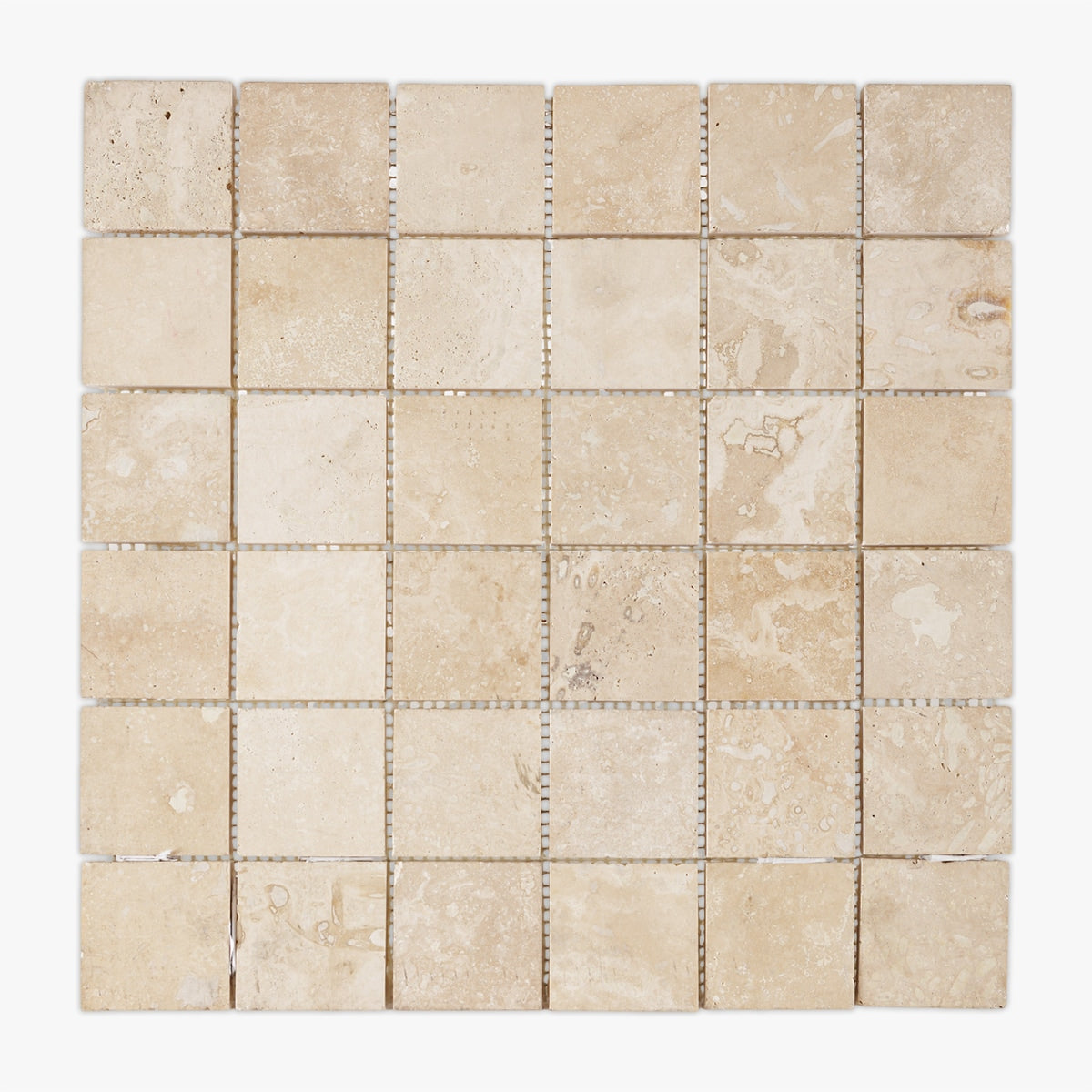 Home Ivory Light Honed And Filled 2x2 Travertine Mosaic