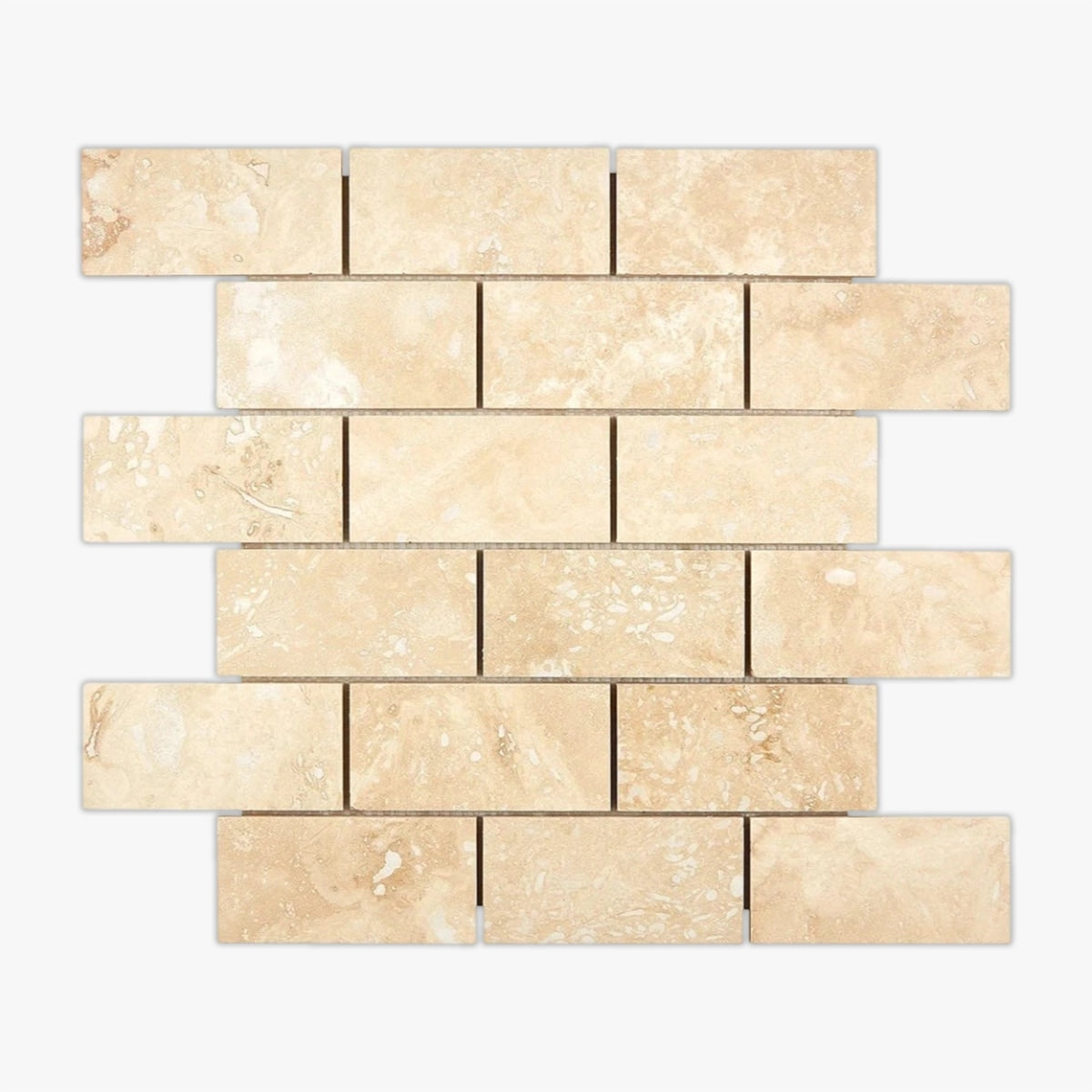 Ivory Light Honed And Filled 2x4 Brick Travertine Mosaic