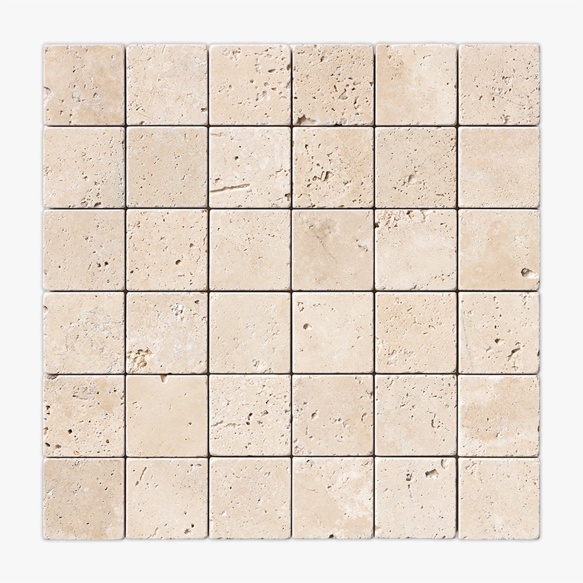 Ivory Light Tumbled 2x2 Travertine Mosaic
