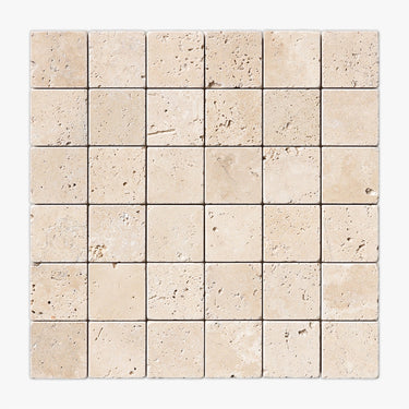 Get a sample of Ivory Light Tumbled 2x2 Travertine Mosaic for only $5.00.