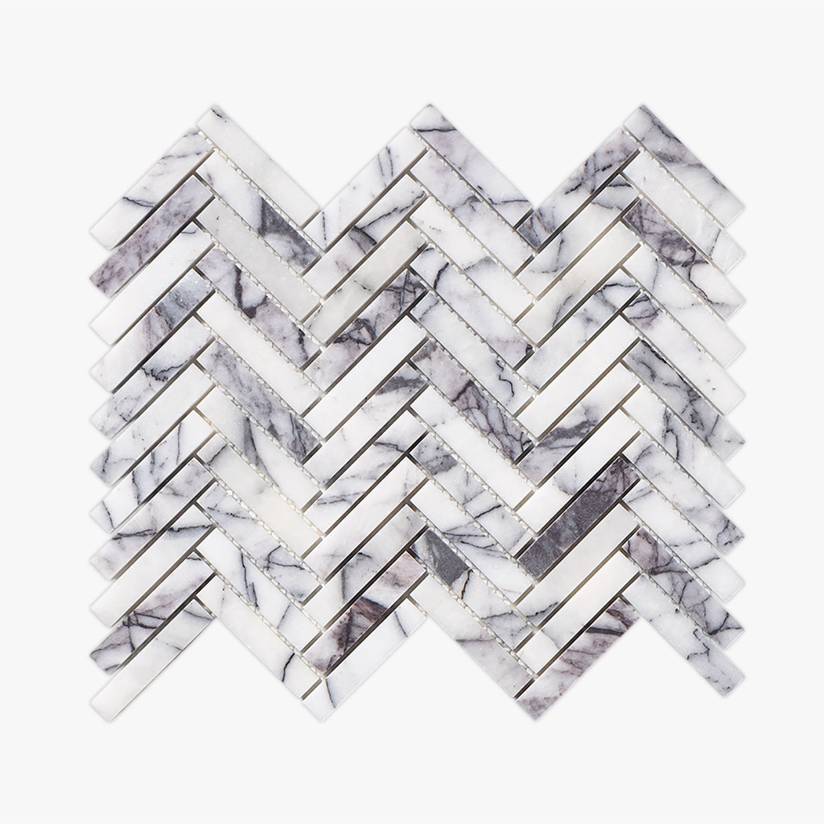 Get a sample of Lilac Polished 1x3 Herringbone Marble Mosaic for only $5.00.