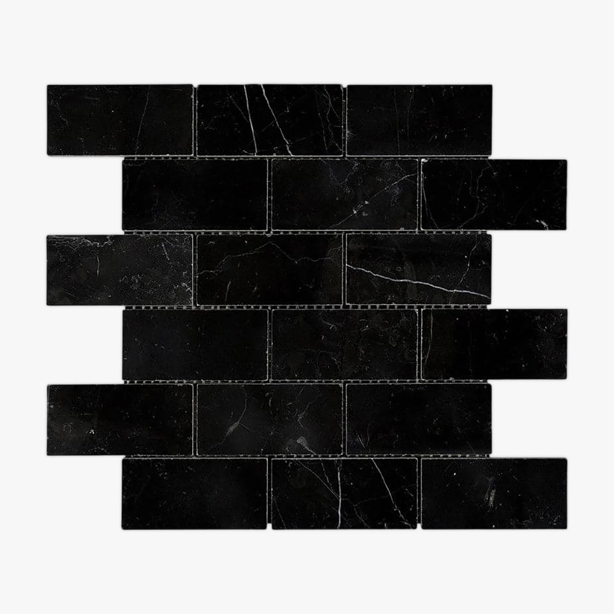 Nero Marquina Honed 2x4 Brick Marble Mosaic
