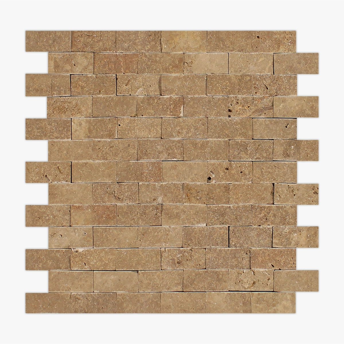 Noce Tumbled 1x2 Split Face Travertine Mosaic