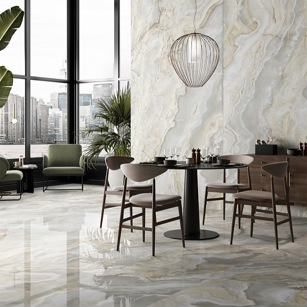 Opalia Onyx Argento Glossy 24x48 Porcelain Tile