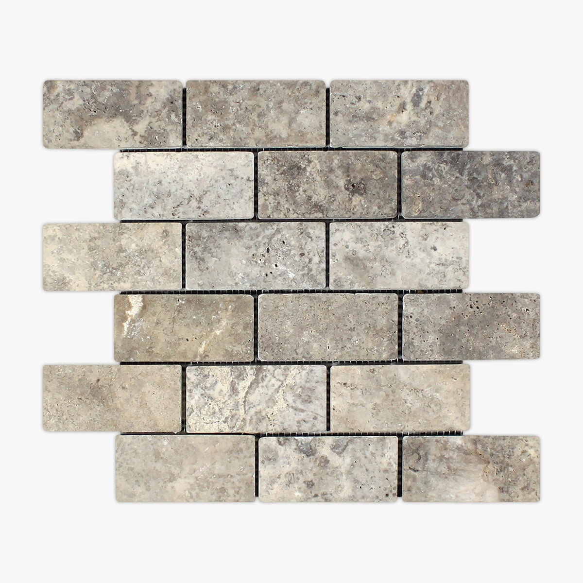 Order a Sample Get a sample of Silver Tumbled 2x4 Brick Travertine Mosaic for only $5.00.