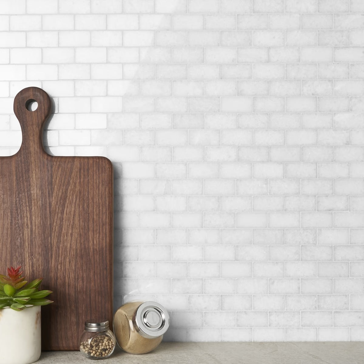 Get a sample of Snow White Honed 1x2 Brick Marble Mosaic for only $5.00.