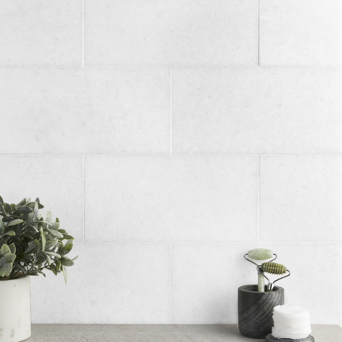 Get a sample of Snow White Honed 6x12 Marble Tile for only $5.00.
