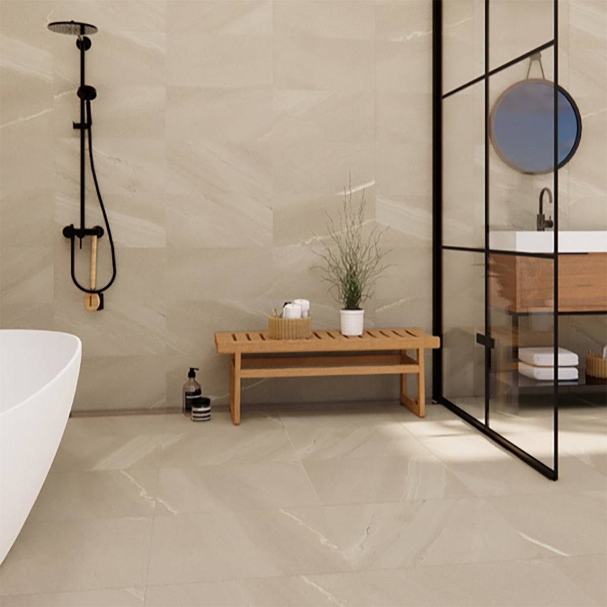 Travertine Touch Ivory Matte 24x24 Porcelain Tile