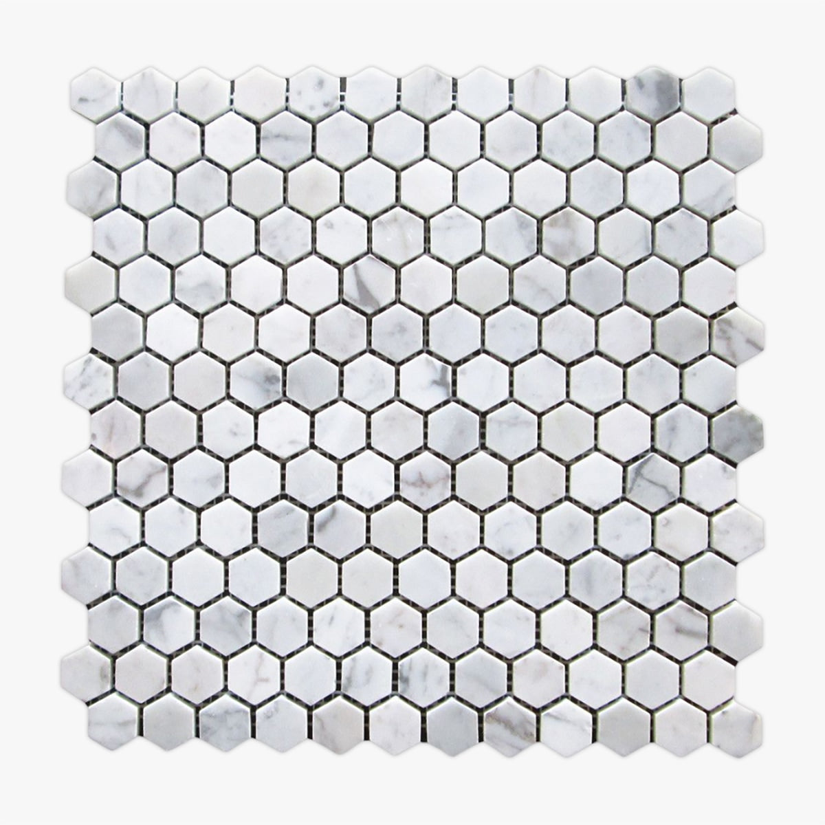 Order a Sample Get a sample of White Carrara Honed 1 Inch Hexagon Marble Mosaic for only $5.00.